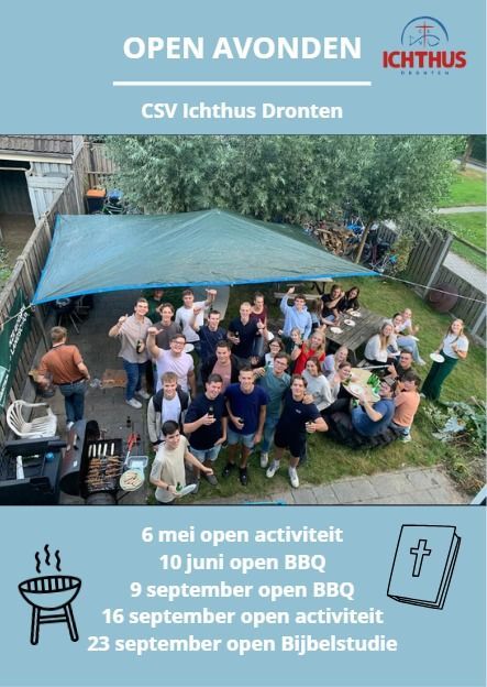 Lijkt het je leuk om Ichthus beter te leren kennen, kom dan op onze open BBQ op 11 september, of bij onze open activiteit of Bijbelstudie op 18 en 25 september!