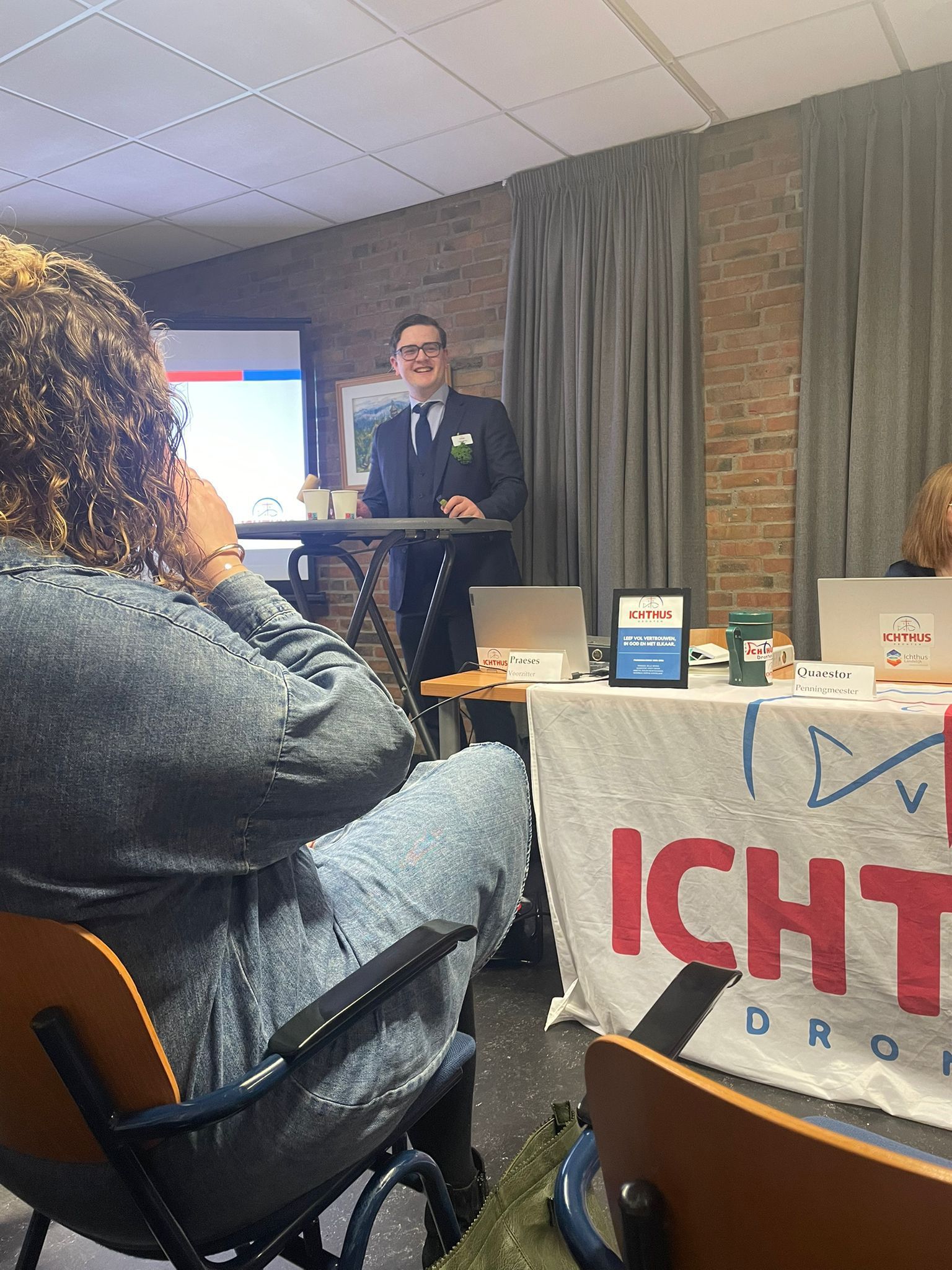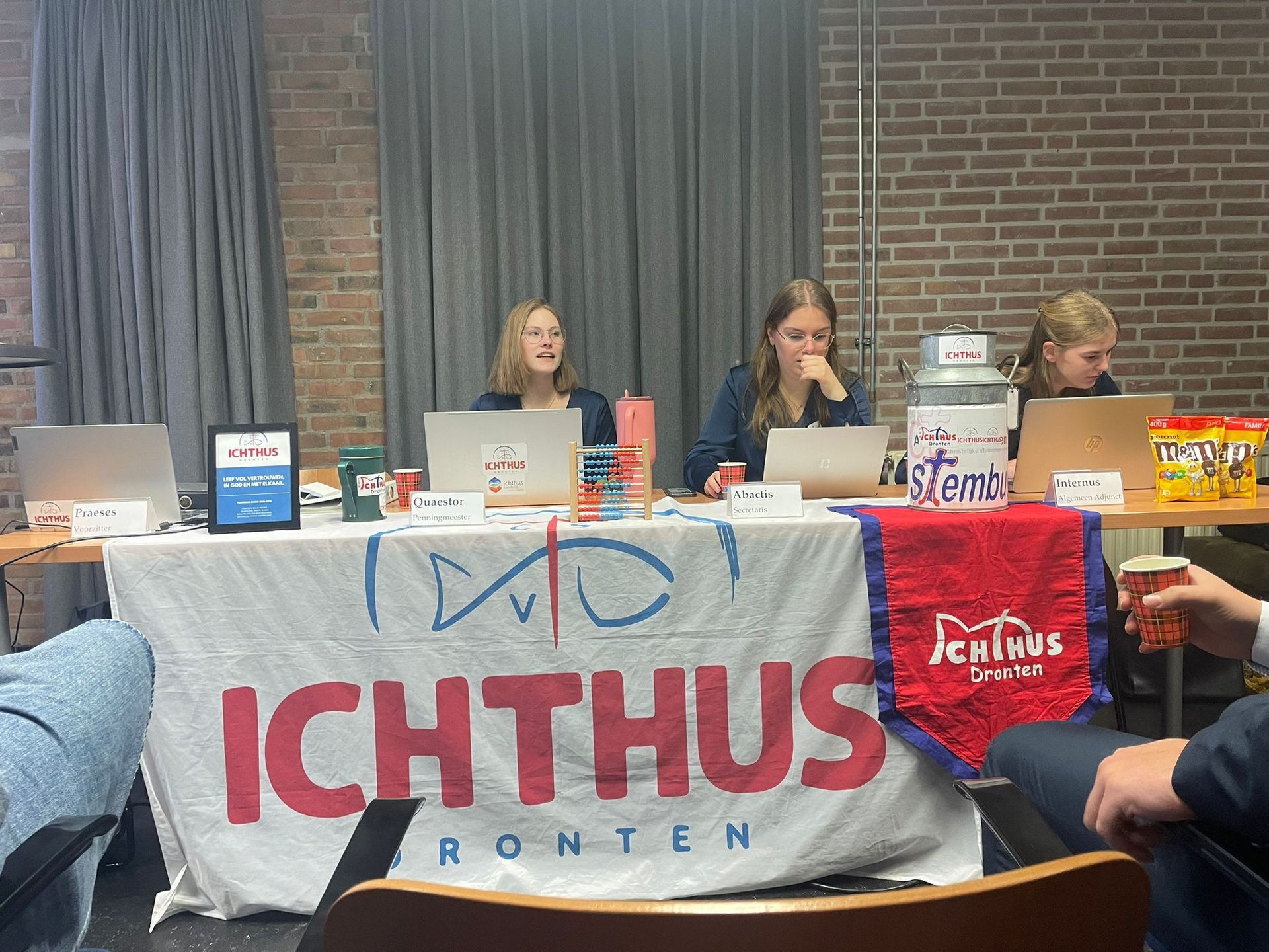 Op 29 mei 2024 hadden we alweer de derde en laatste ALV van Praesidium Dijksman. Tijdens deze ALV hebben we weer een nieuw lid ingeslagen, 6 leden uitgeslagen, 1 motie behandeld en de bestuurswissel gedaan in een recordtijd van 19.30uur tot 23.00 uur (normaal gezien duurt zo'n ALV iets langer). Wij als Praesidium Dijksman hebben genoten van de avond, maar ook zeker van ons jaar als bestuur waarin wij leiding mochten geven aan Ichthus Dronten. We kijken terug op een mooi jaar waarin we veel geleerd en beleefd hebben en nieuwe mensen leerden kennen. Bedankt allemaal!