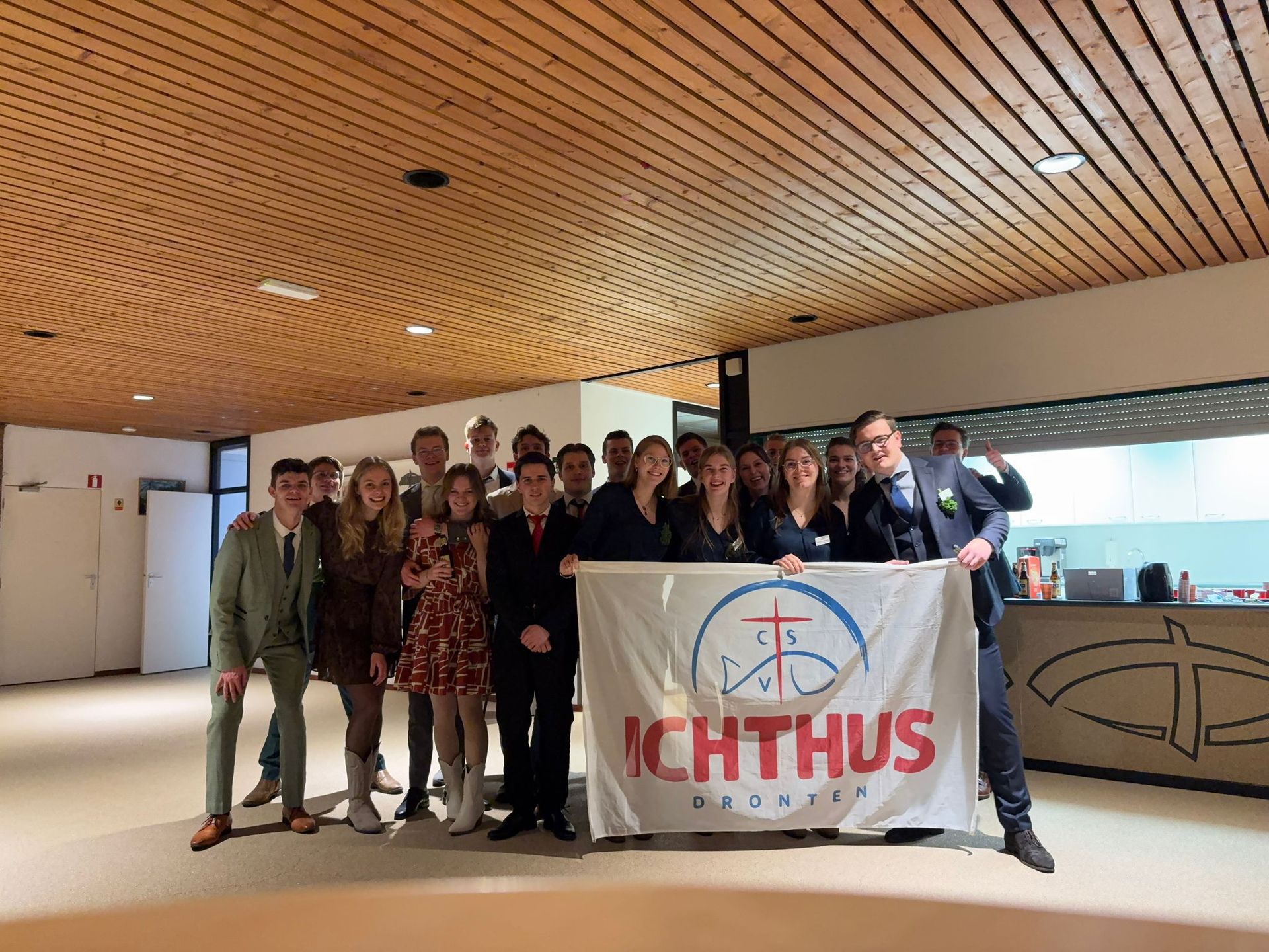 Op 29 februari 2024 zijn de broederverenigingen van Dronten en zusterverenigingen van Ichthus landelijk verband op bezoek geweest in Dronten. Dit om te proosten op Bestuur Dijksman, maar ook op ons 30 jarig bestaan (10 jaar onder de naam Ichthus). We kijken terug op een erg geslaagde avond. Onze leden hebben ons goed geholpen met de voorbereidingen, de service tijdens de avond maar vooral door te beveiligen van brasobjecten en het bestuur. Er is niks meegenomen die avond waar wij de beveiligers erg dankbaar voor zijn. We kijken terug op een erg gezellige en geslaagde avond.